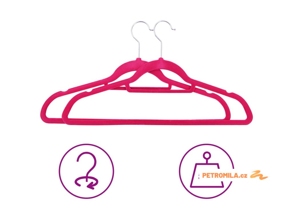 Plastová šatní ramínka v této sadě jsou vyrobená z plastu a kovu, takže mají dlouhou životnost a jsou dostatečně pevná, aby unesla i těžší oblečení. Sametem potažená ramínka jsou hladká a chrání oblečení před poškozením. Kolem dokola otočný háček poskytuje flexibilitu při organizaci oblečení na různých místech. Dvě drážky na obou stranách ramínka zabraňují sklouznutí oblečení nebo oděvních doplňků.