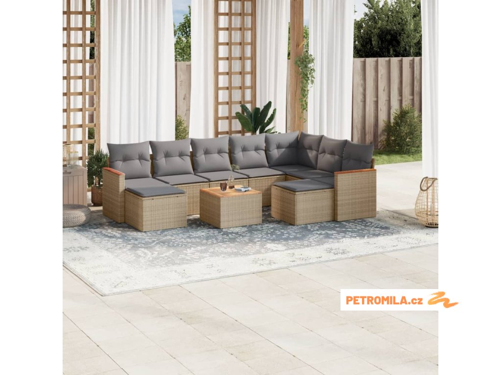 10dílná zahradní sedací souprava a podušky mix béžové polyratan