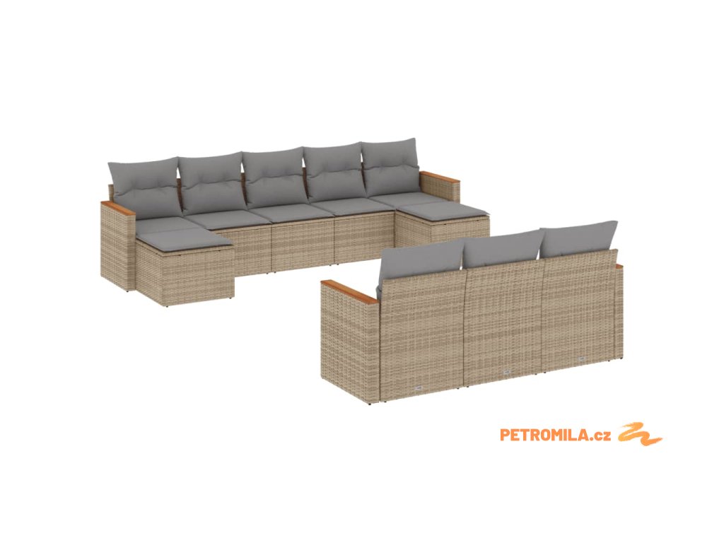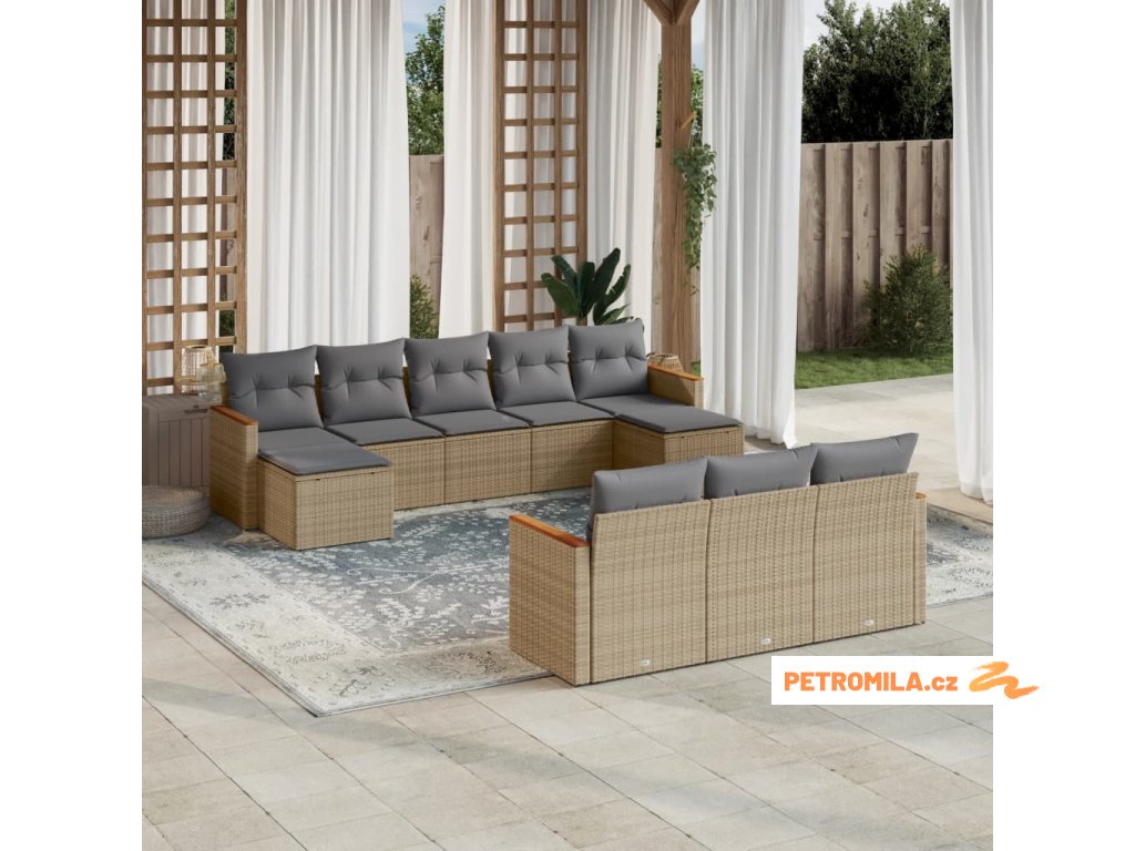 10dílná zahradní sedací souprava a podušky mix béžové polyratan