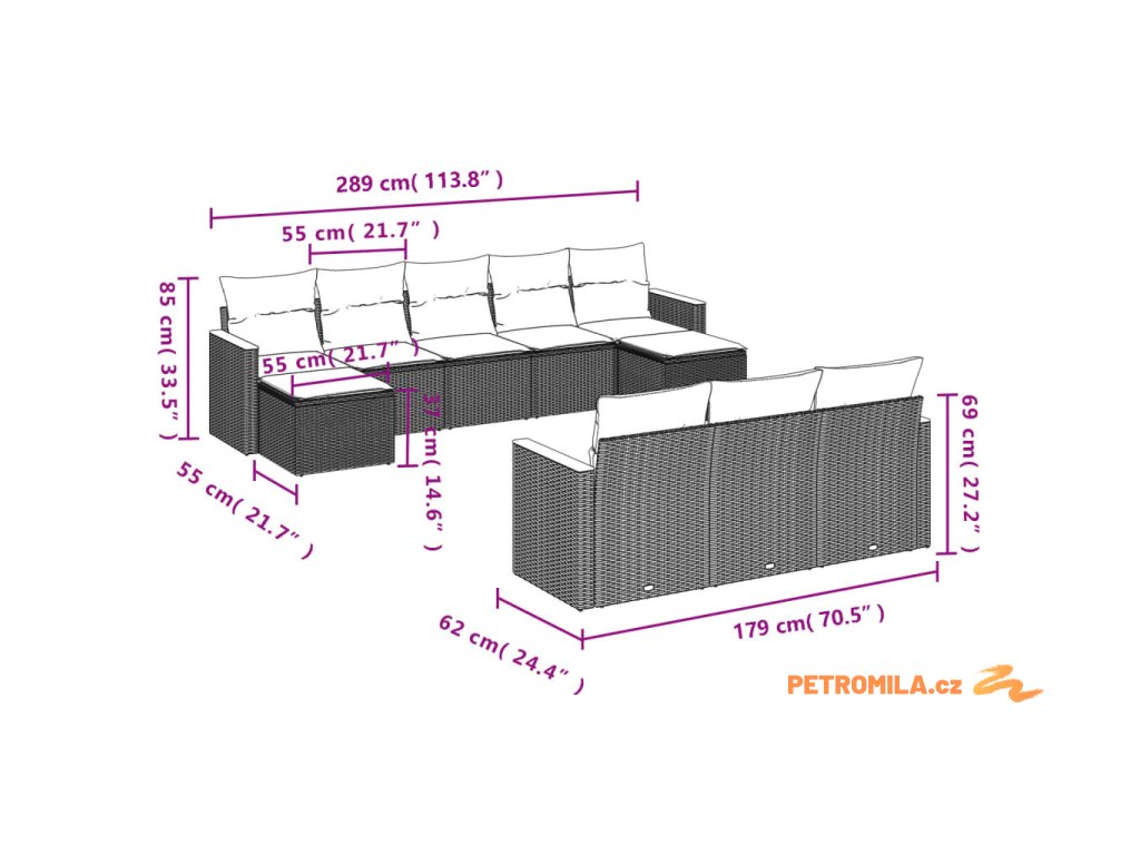 Sada zahradních pohovek s polštářem 8 pcs Béžová Poly ratan