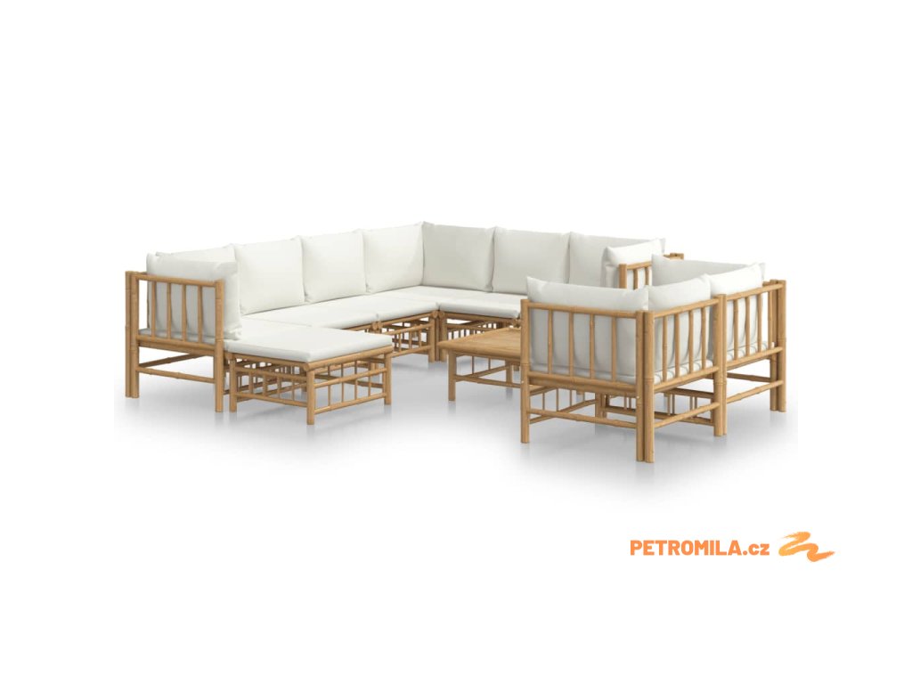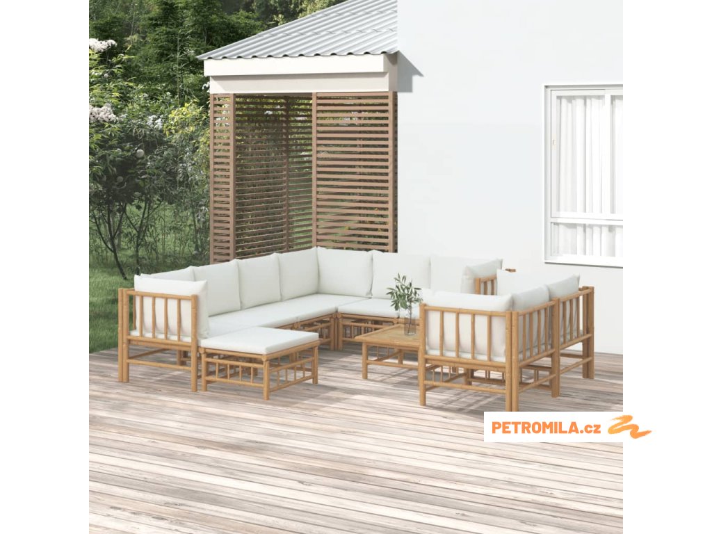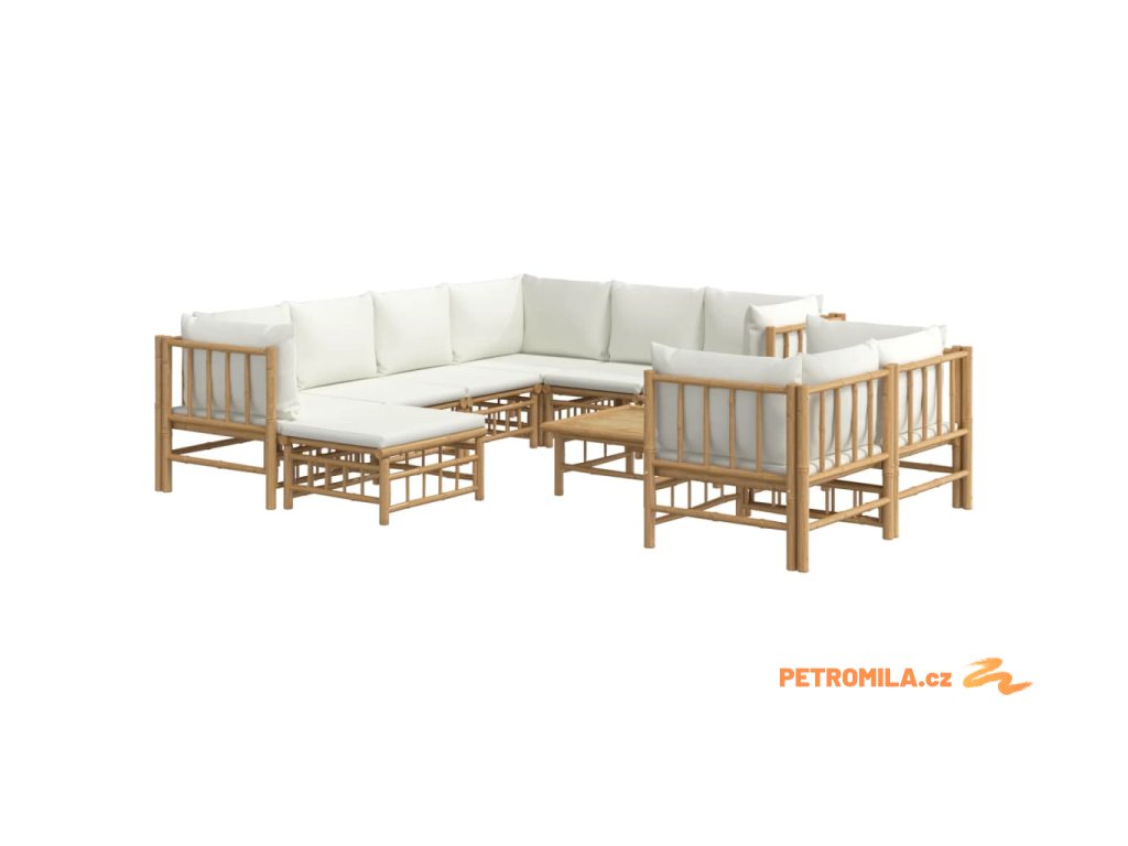 10dílná zahradní sedací souprava krémově bílé podušky bambus