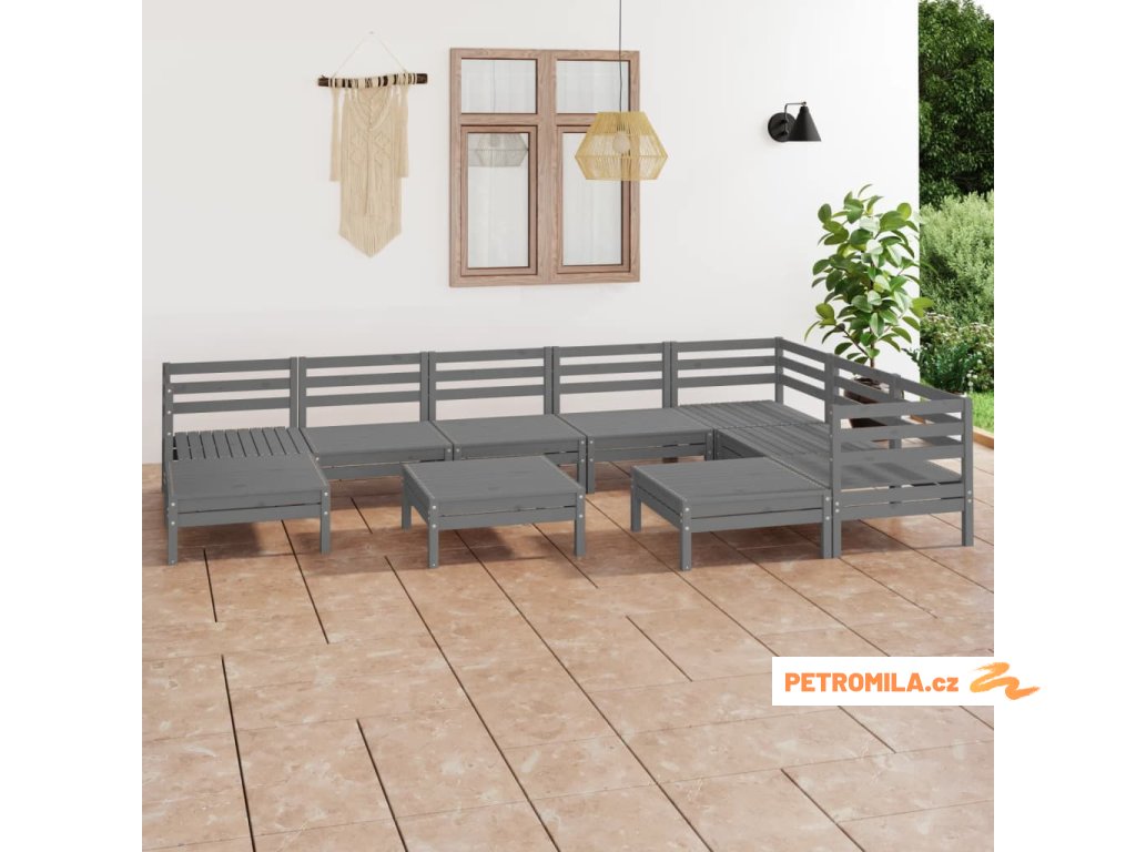10dílná zahradní sedací souprava masivní borovice šedá