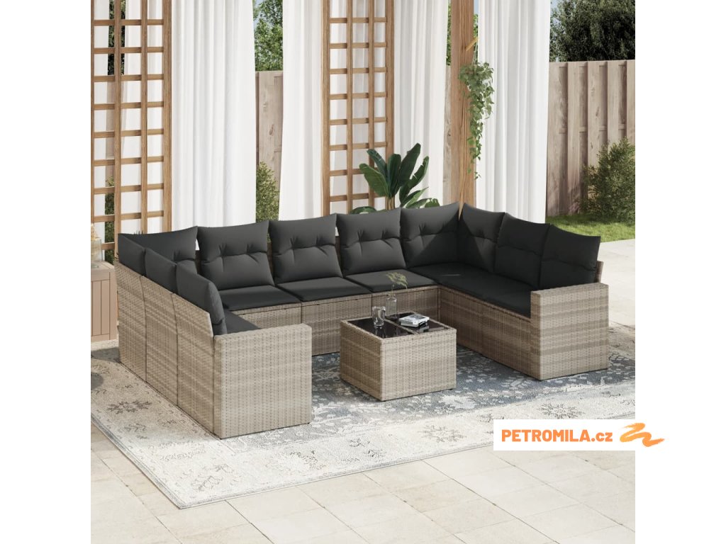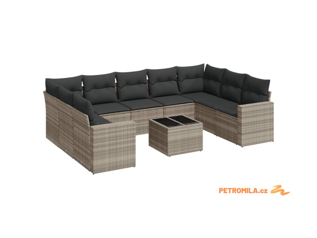 10dílná zahradní sedací souprava podušky světle šedá polyratan