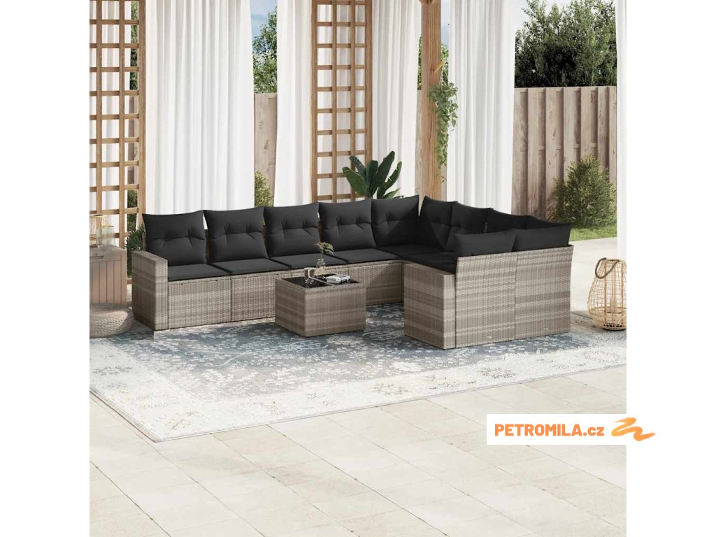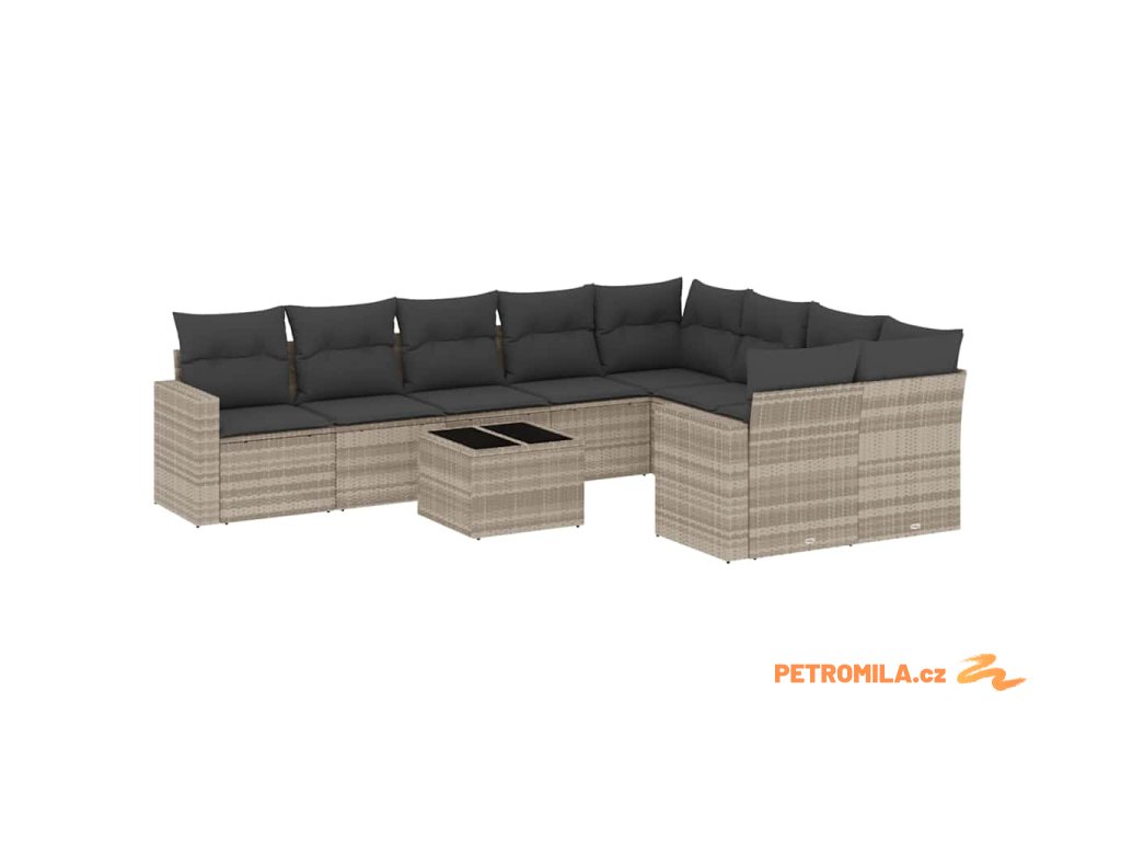 10dílná zahradní sedací souprava podušky světle šedá polyratan