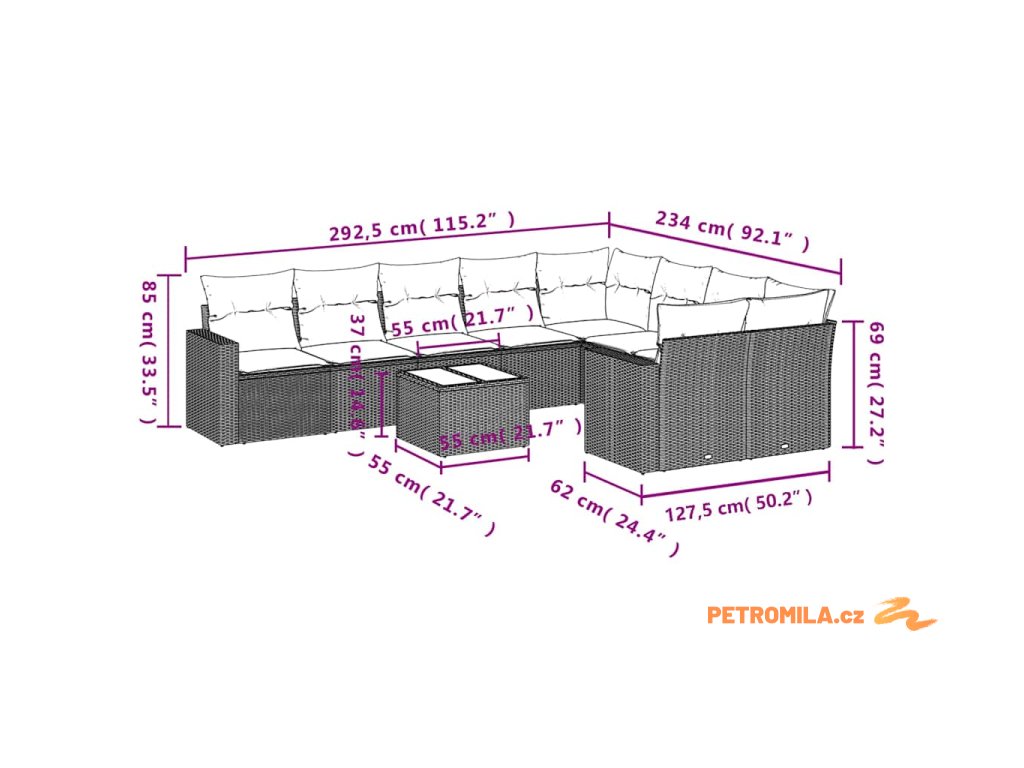 Tato zahradní sedací souprava je dokonalým doplňkem vaší zahrady, terasy nebo dvorku a poskytne vám pohodlné a příjemné místo, kde si můžete povídat s rodinou a přáteli nebo jen tak odpočívat a užívat si pobyt venku.
