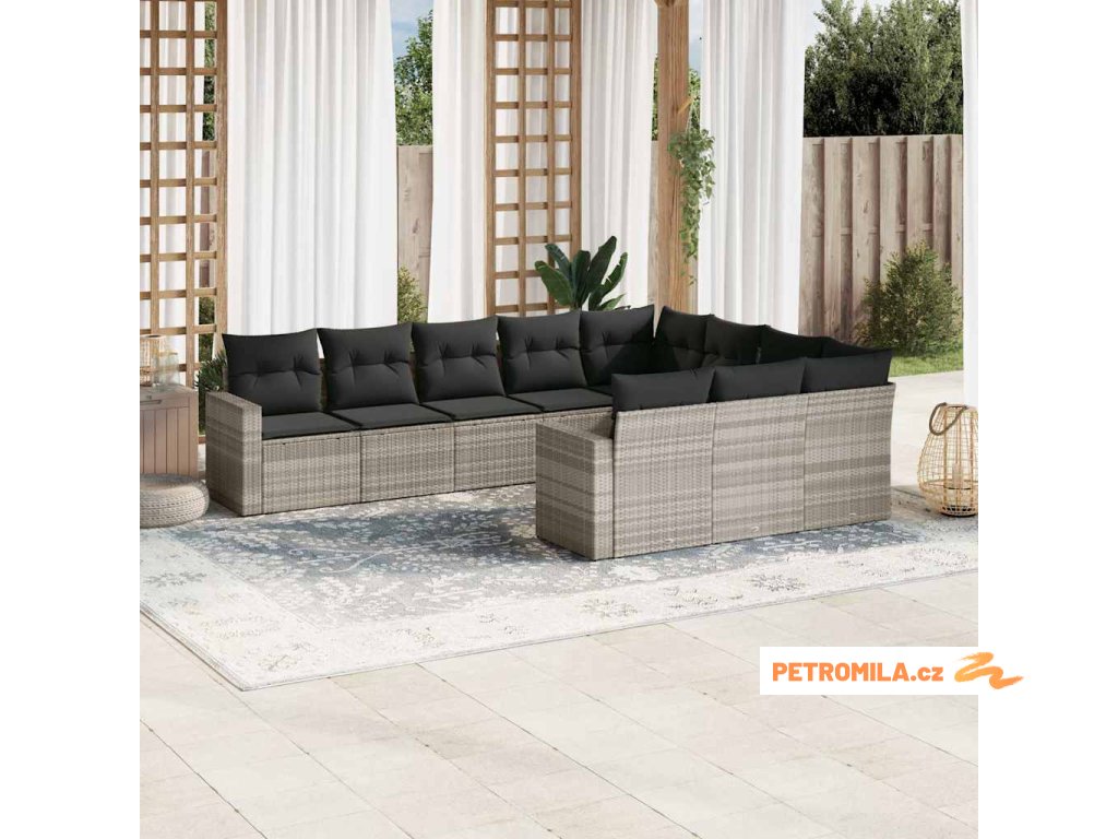 10dílná zahradní sedací souprava podušky světle šedá polyratan