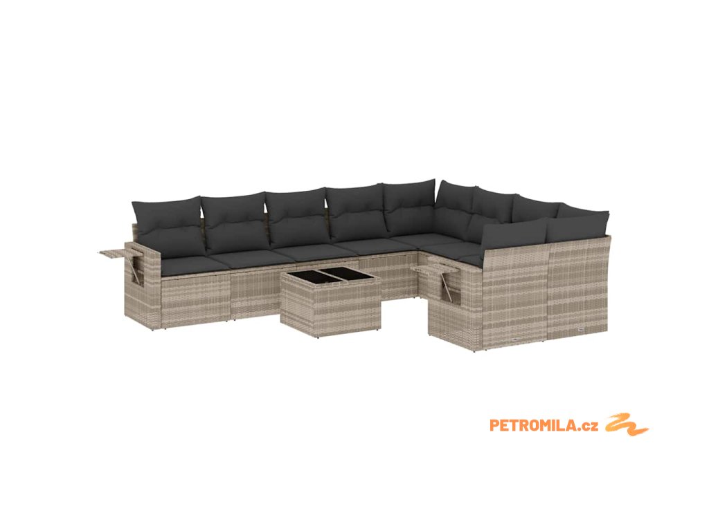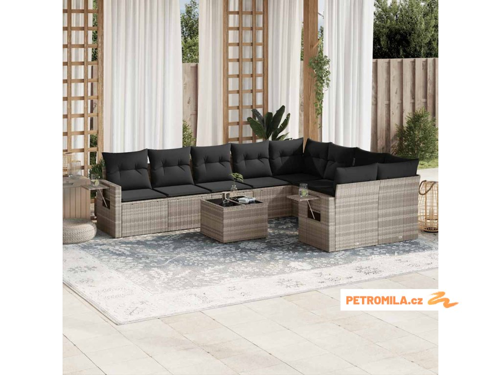 10dílná zahradní sedací souprava podušky světle šedá polyratan