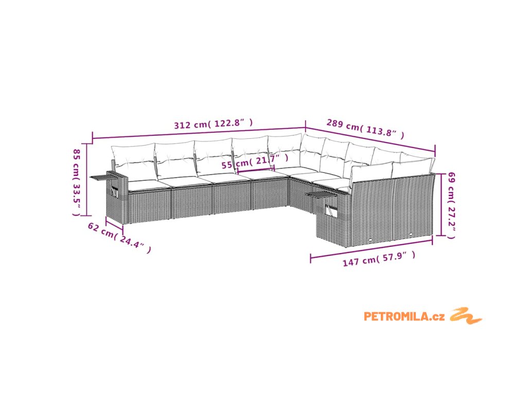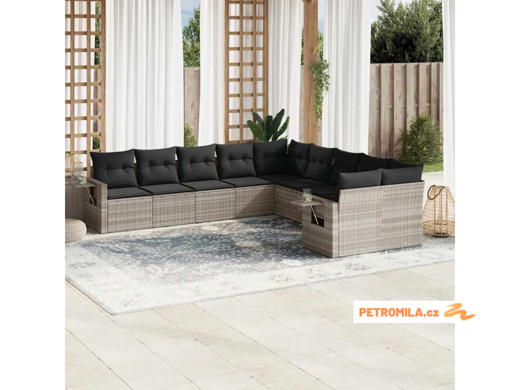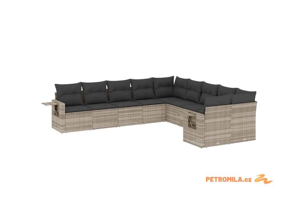 10dílná zahradní sedací souprava podušky světle šedá polyratan