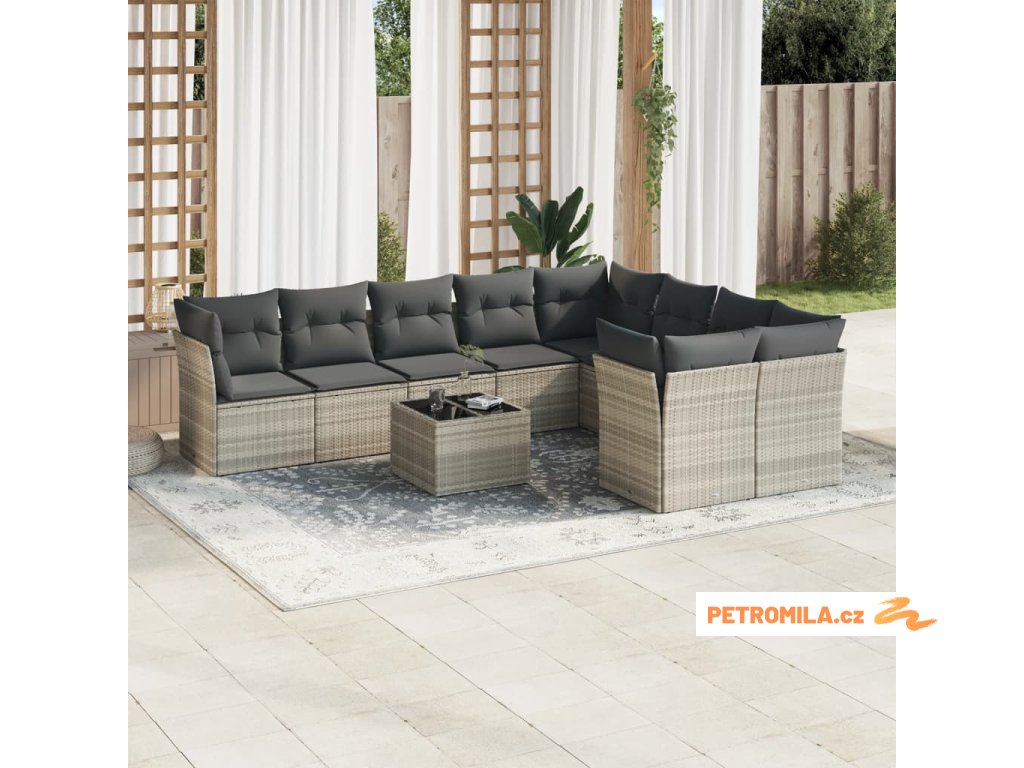 10dílná zahradní sedací souprava podušky světle šedá polyratan