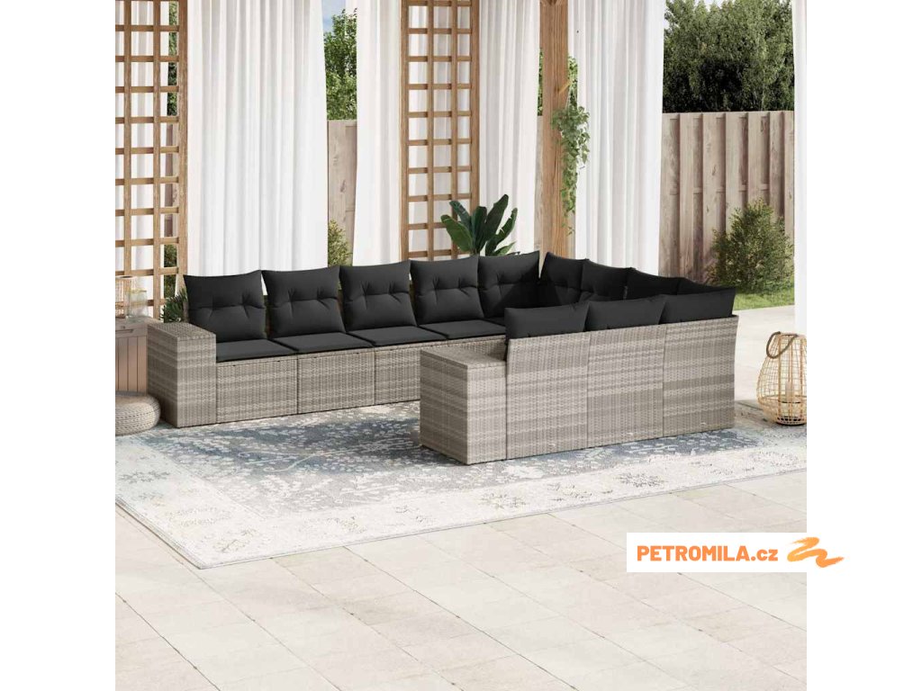 10dílná zahradní sedací souprava podušky světle šedá polyratan
