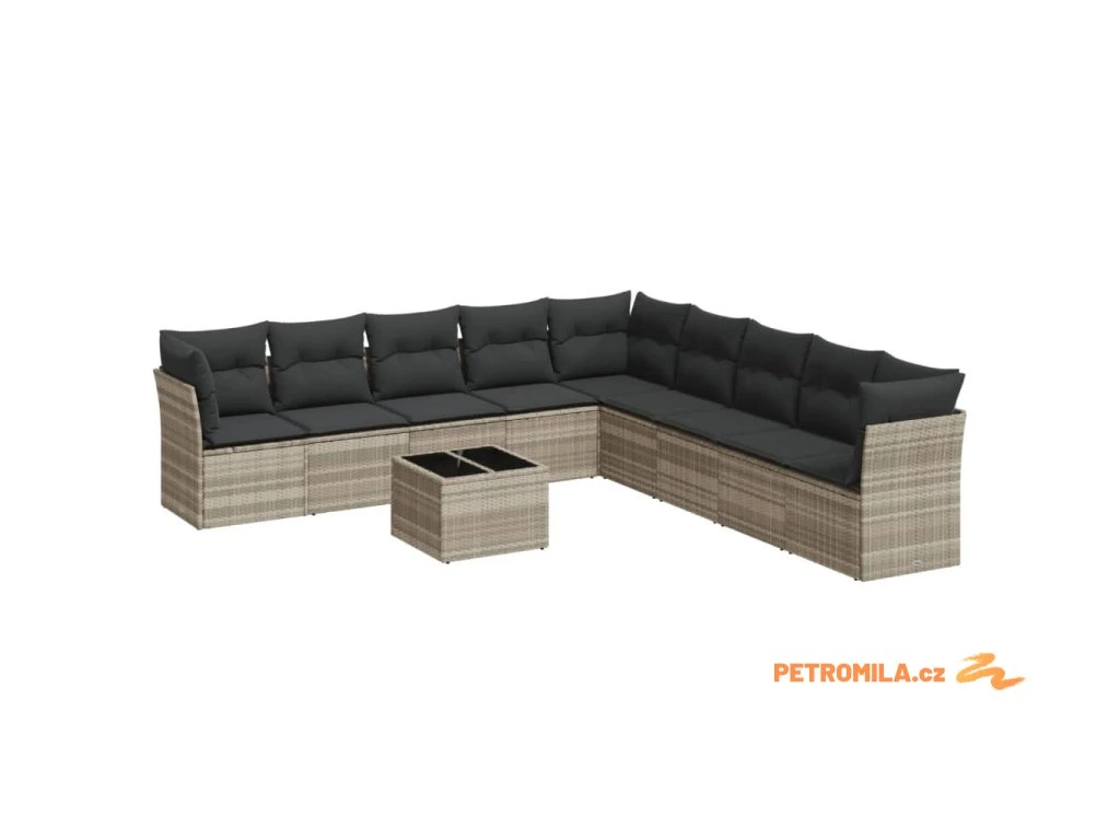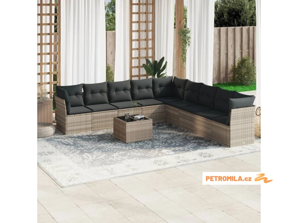 10dílná zahradní sedací souprava podušky světle šedá polyratan