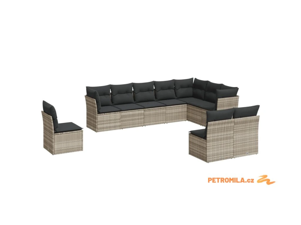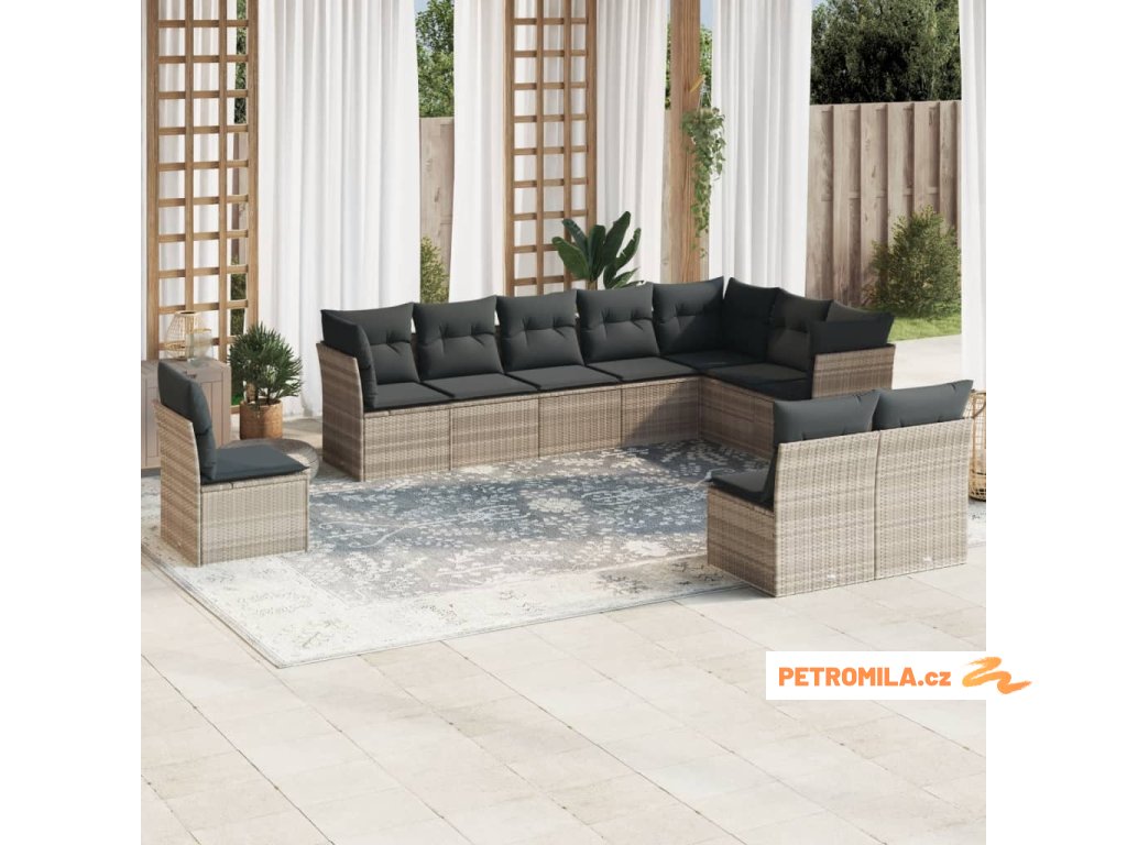 10dílná zahradní sedací souprava podušky světle šedá polyratan