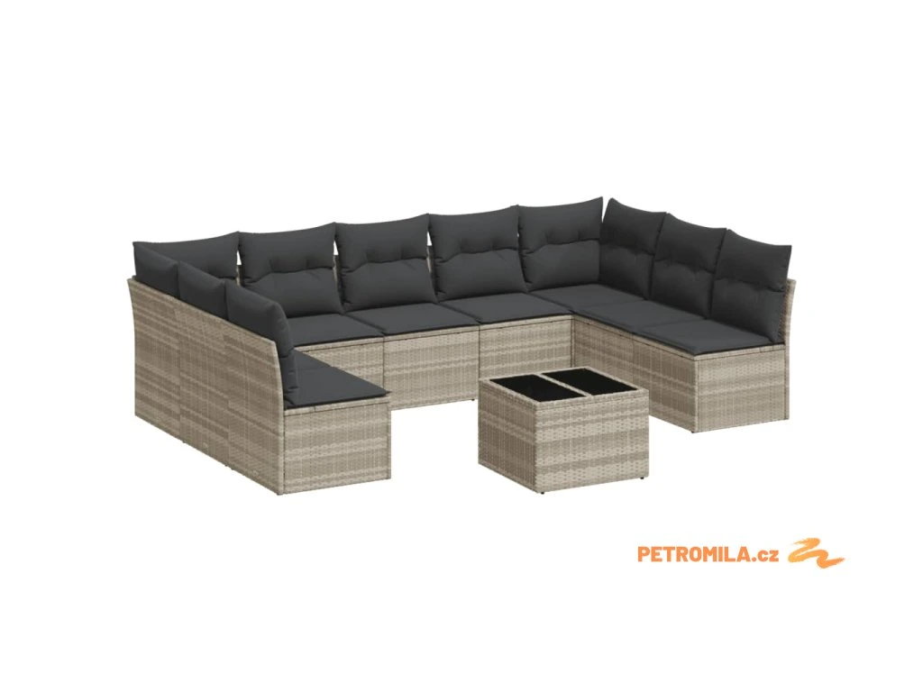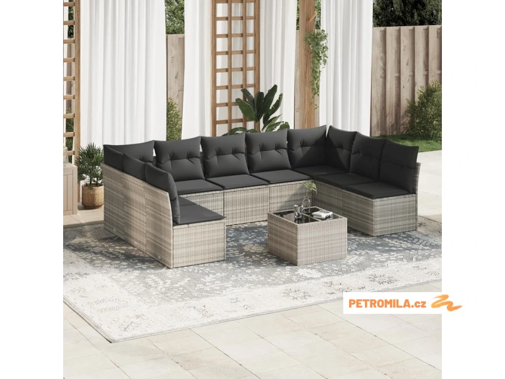 10dílná zahradní sedací souprava podušky světle šedá polyratan