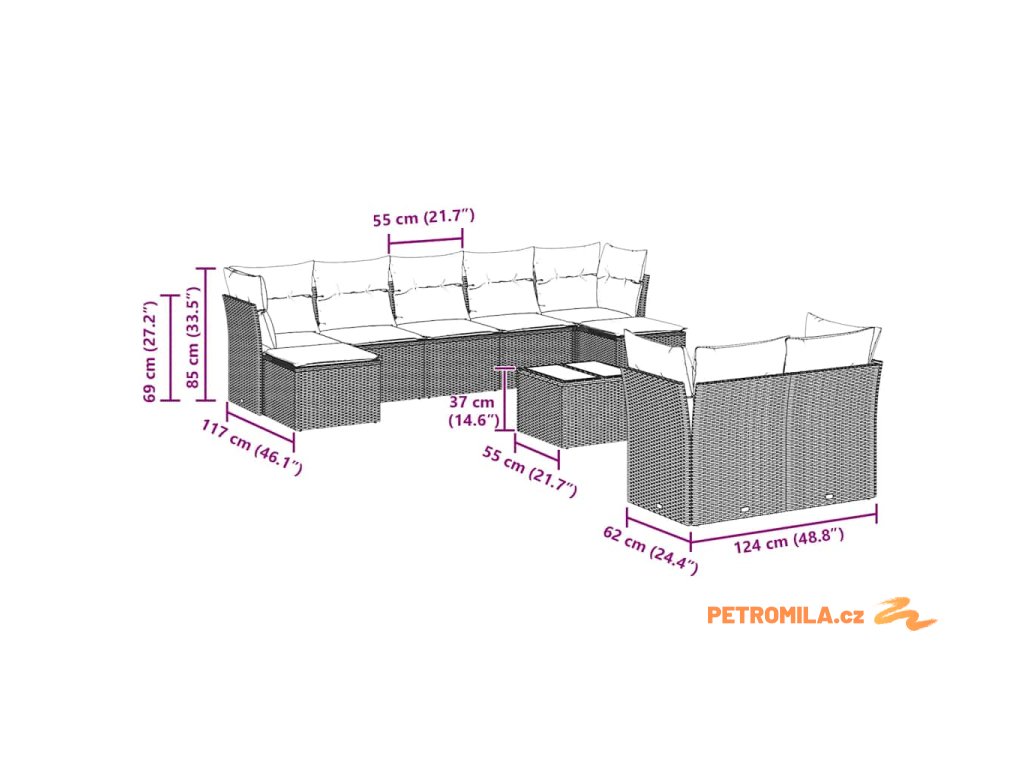 10dílná zahradní sedací souprava podušky světle šedá polyratan