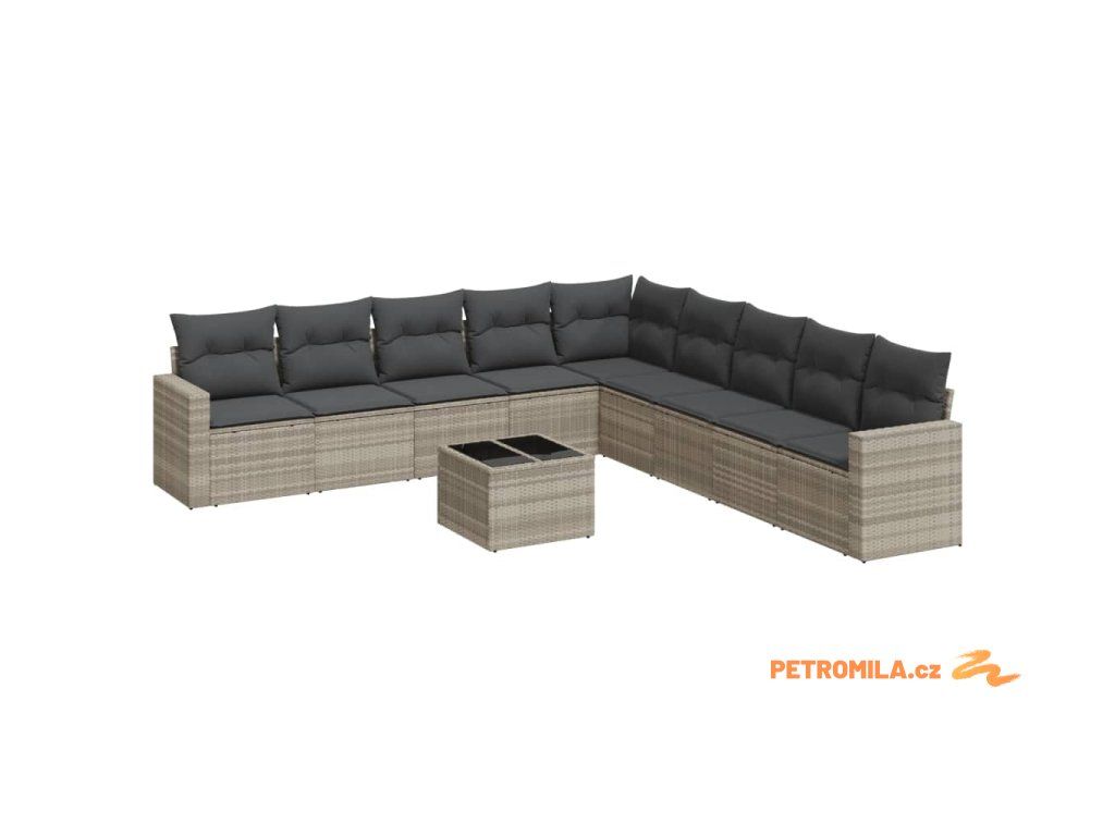 10dílná zahradní sedací souprava podušky světle šedá polyratan