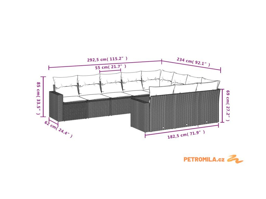 10dílná zahradní sedací souprava podušky světle šedá polyratan