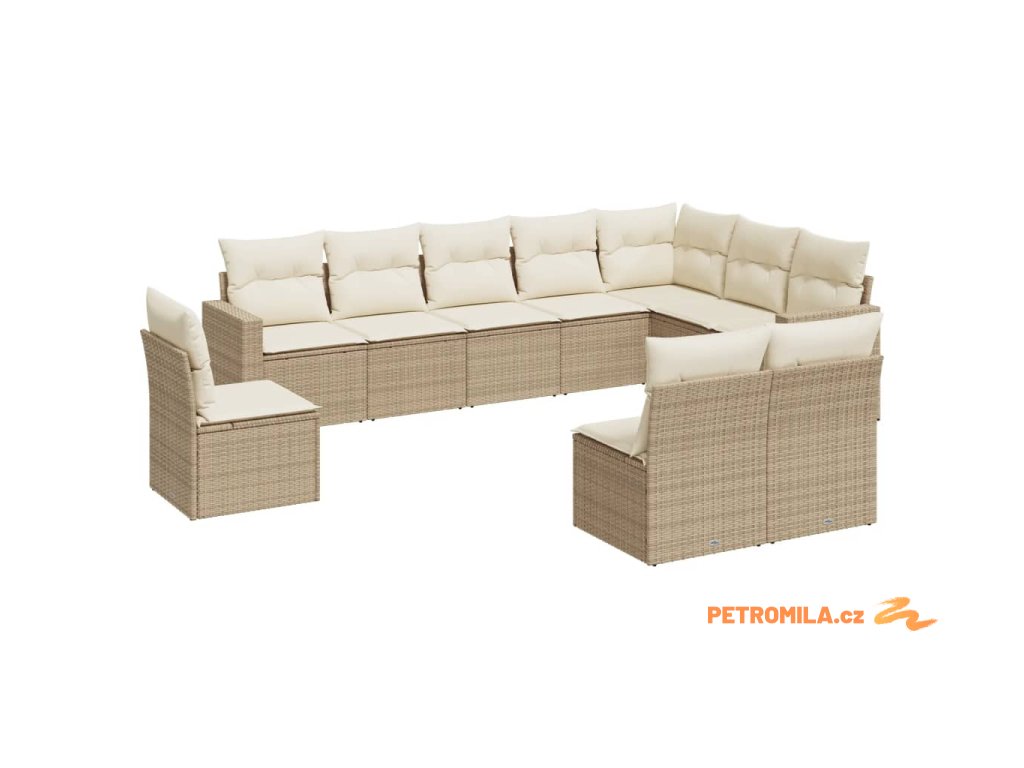 10dílná zahradní sedací souprava s poduškami béžová polyratan