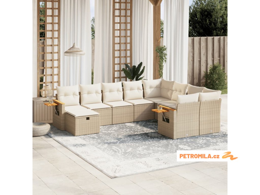 10dílná zahradní sedací souprava s poduškami béžová polyratan