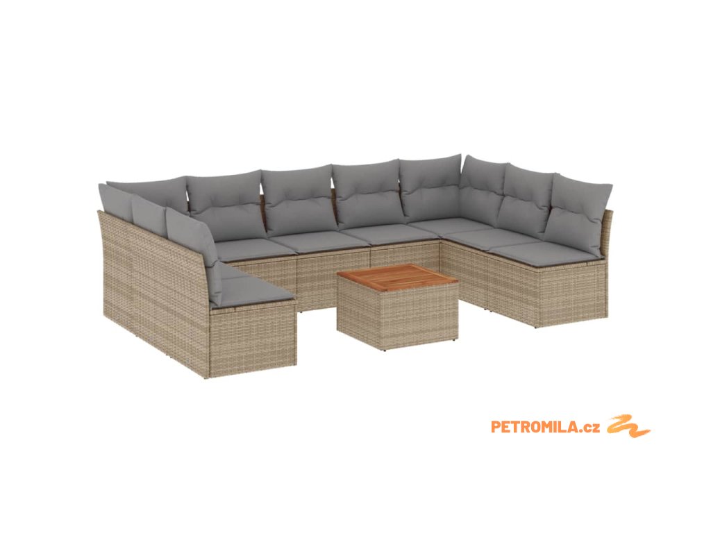 10dílná zahradní sedací souprava s poduškami béžová polyratan