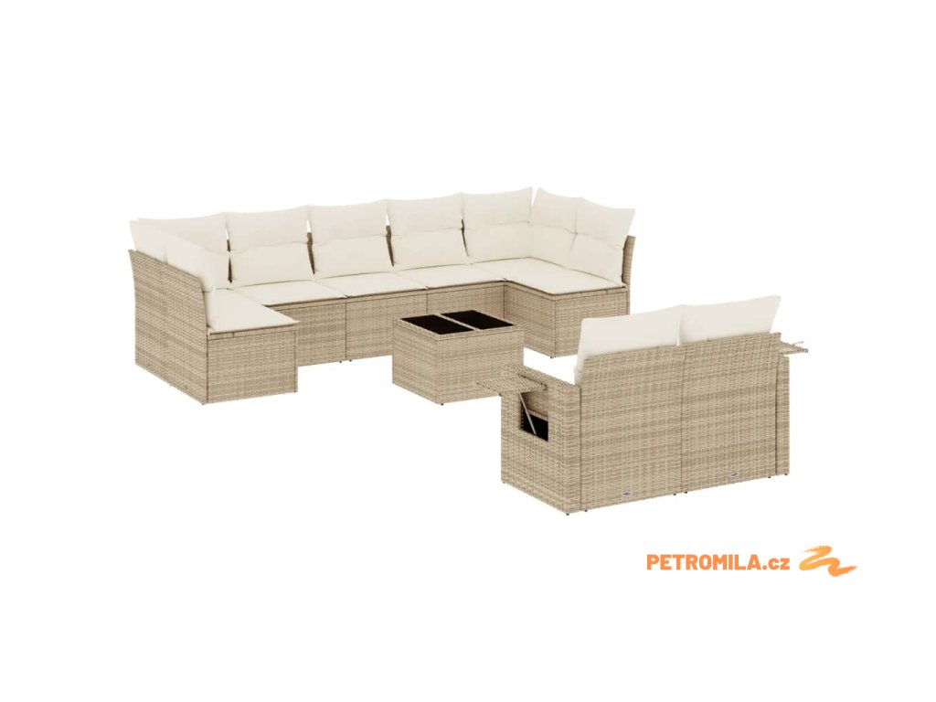 10dílná zahradní sedací souprava s poduškami béžová polyratan