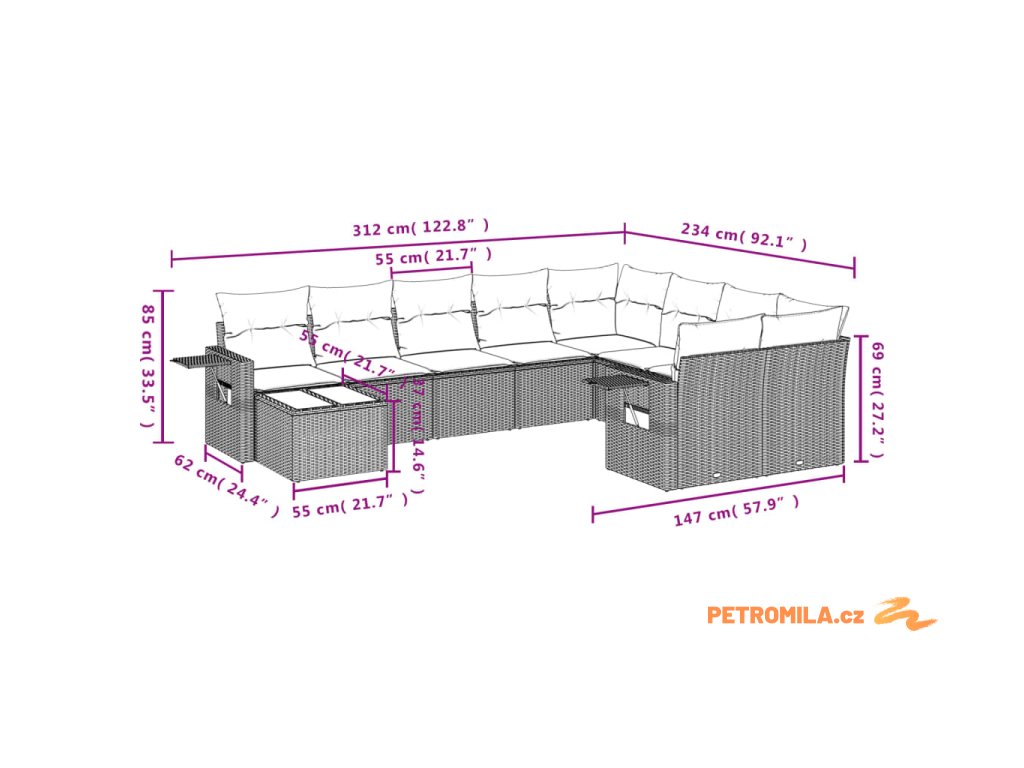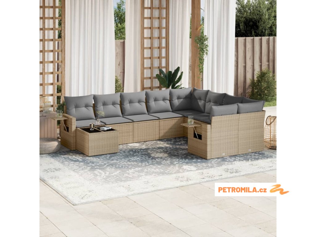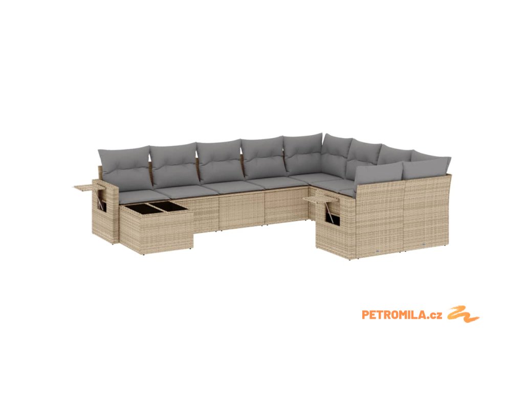 10dílná zahradní sedací souprava s poduškami béžová polyratan