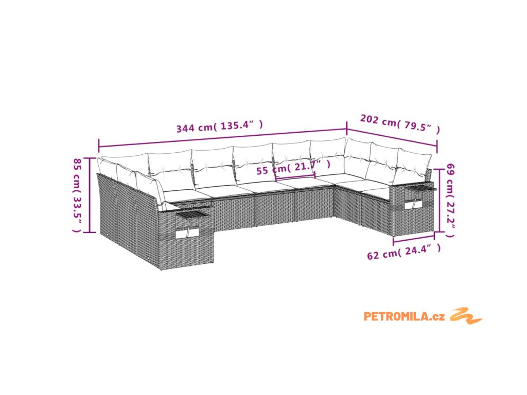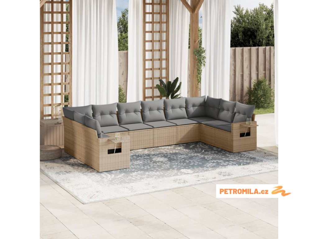 10dílná zahradní sedací souprava s poduškami béžová polyratan