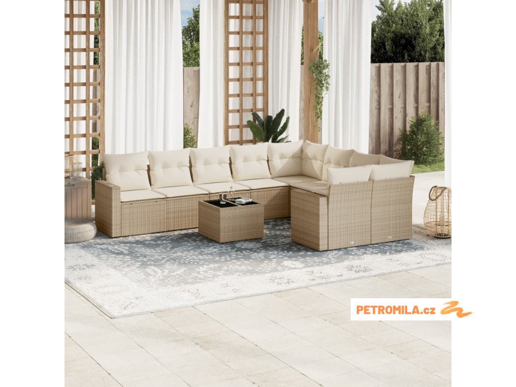 10dílná zahradní sedací souprava s poduškami béžová polyratan