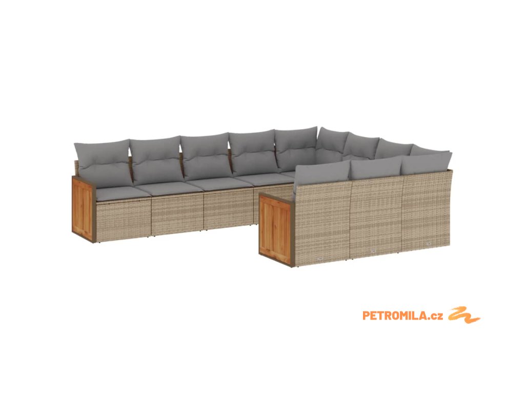 10dílná zahradní sedací souprava s poduškami béžová polyratan