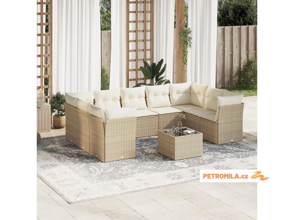 10dílná zahradní sedací souprava s poduškami béžová polyratan