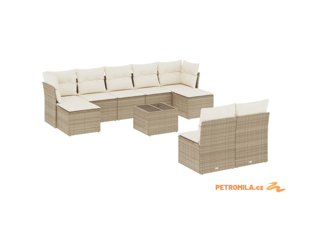 10dílná zahradní sedací souprava s poduškami béžová polyratan