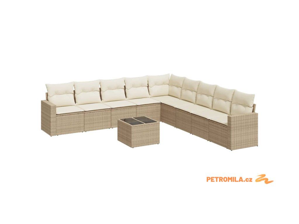 10dílná zahradní sedací souprava s poduškami béžová polyratan