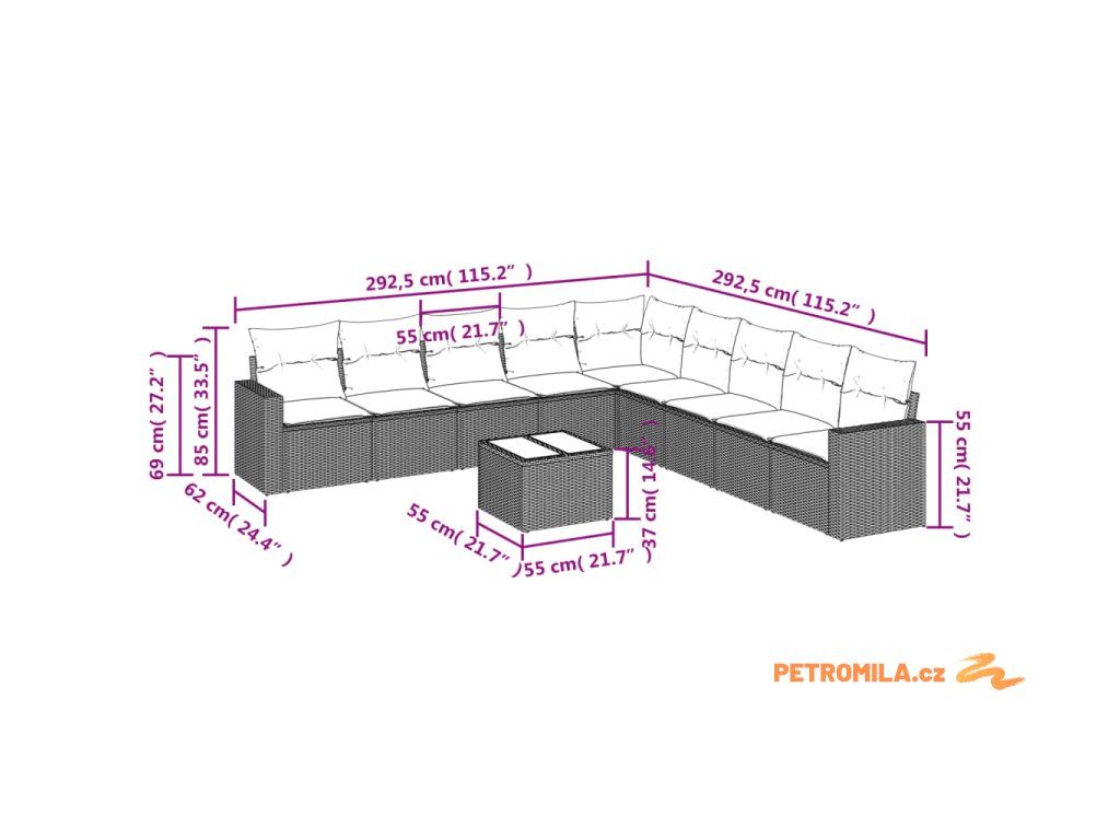 Tato zahradní sedací souprava je dokonalým doplňkem vaší zahrady, terasy nebo dvorku a poskytne vám pohodlné a příjemné místo, kde si můžete povídat s rodinou a přáteli nebo jen tak odpočívat a užívat si pobyt venku.