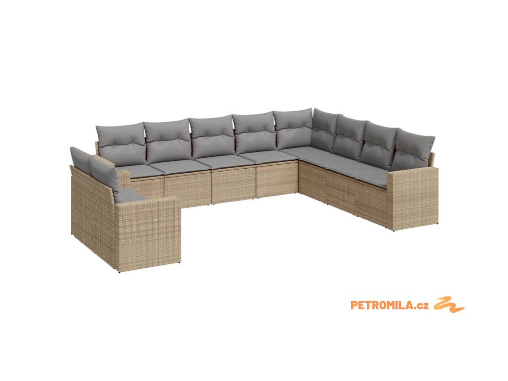 10dílná zahradní sedací souprava s poduškami béžová polyratan