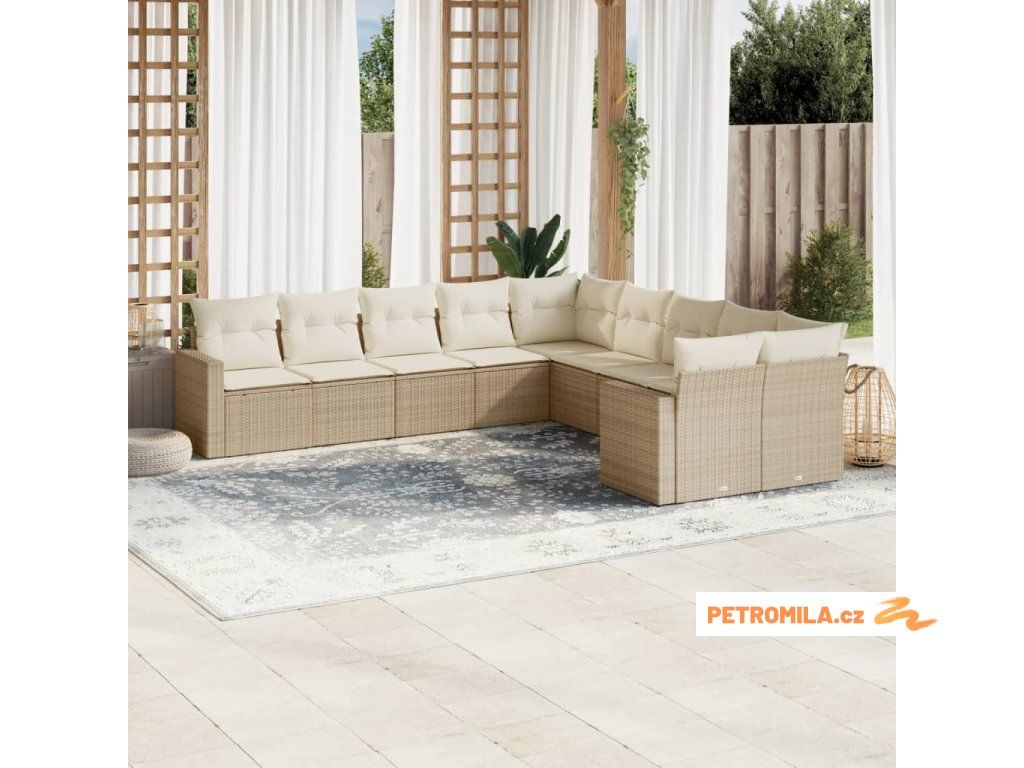 10dílná zahradní sedací souprava s poduškami béžová polyratan