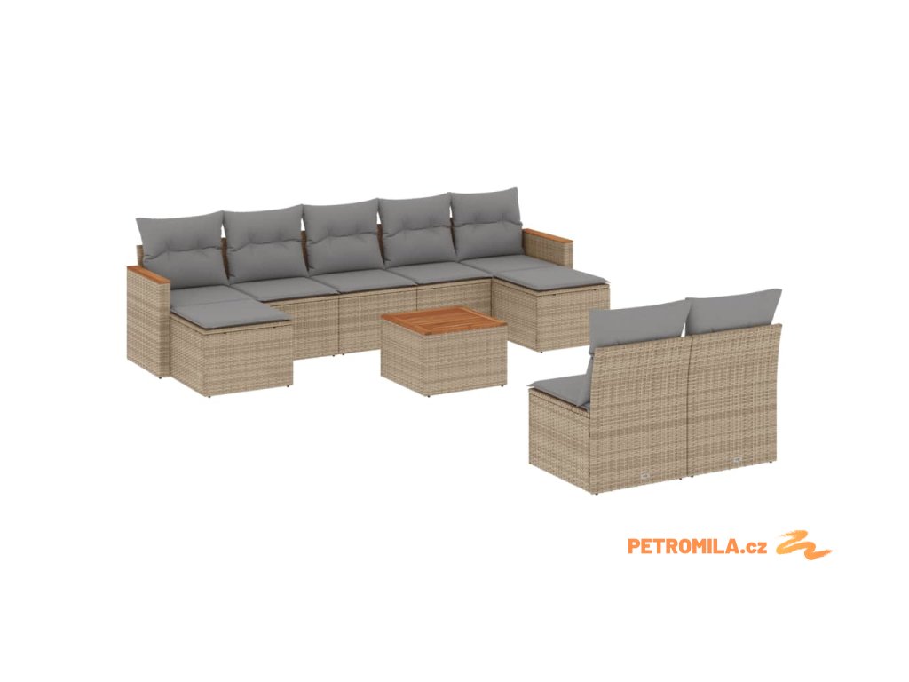 10dílná zahradní sedací souprava s poduškami béžová polyratan