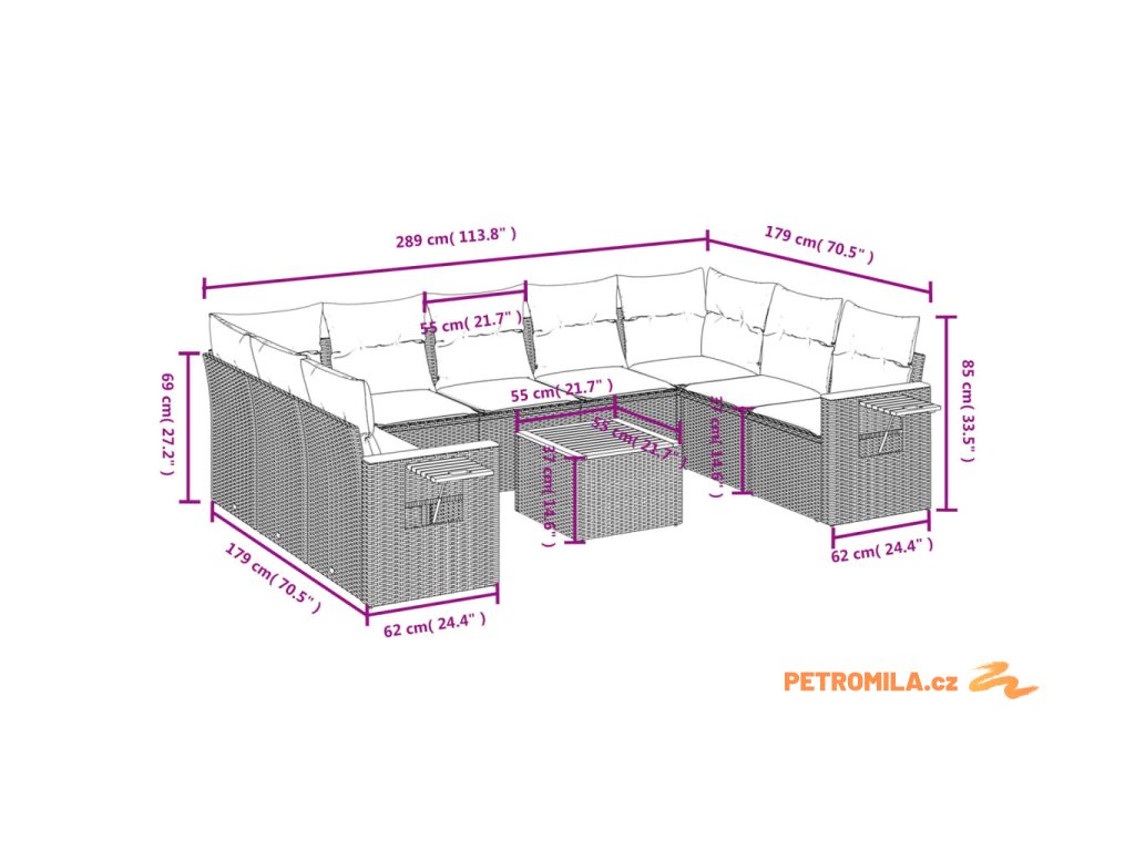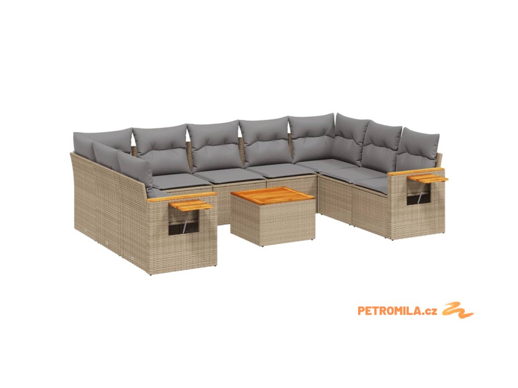 10dílná zahradní sedací souprava s poduškami béžová polyratan