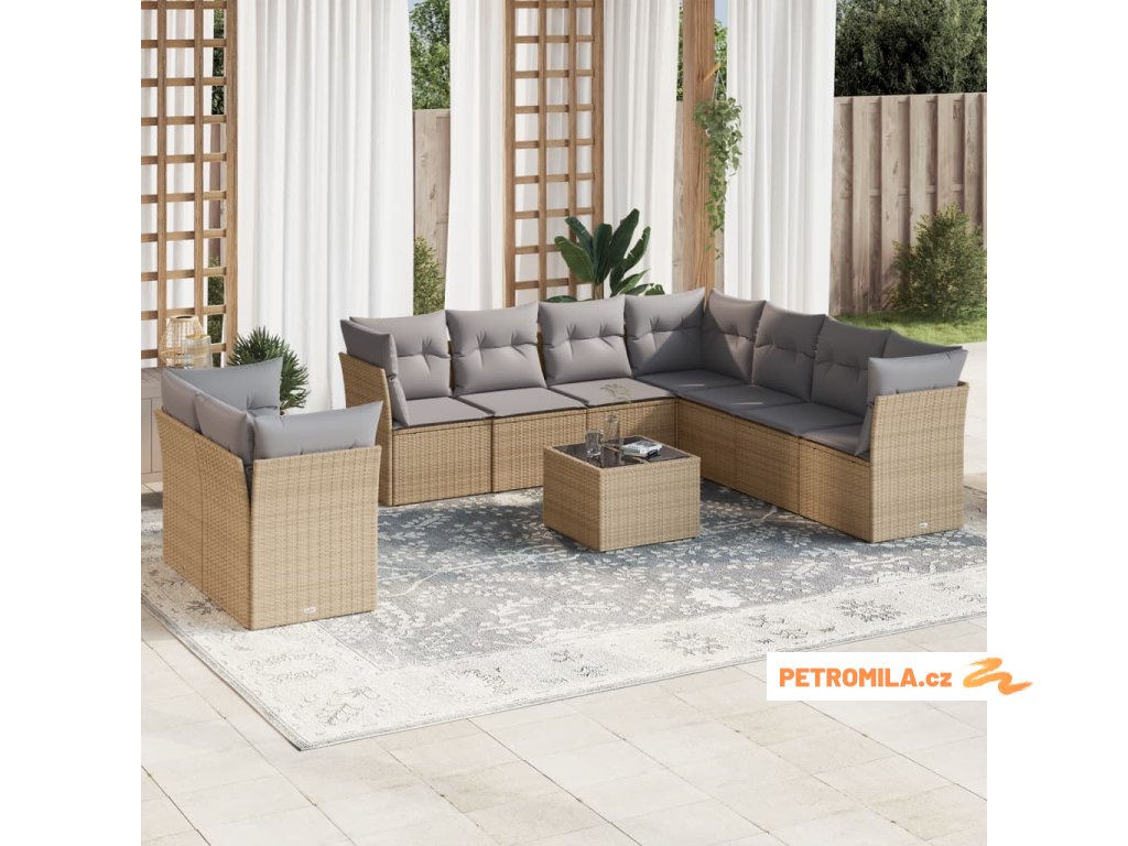 10dílná zahradní sedací souprava s poduškami béžová polyratan
