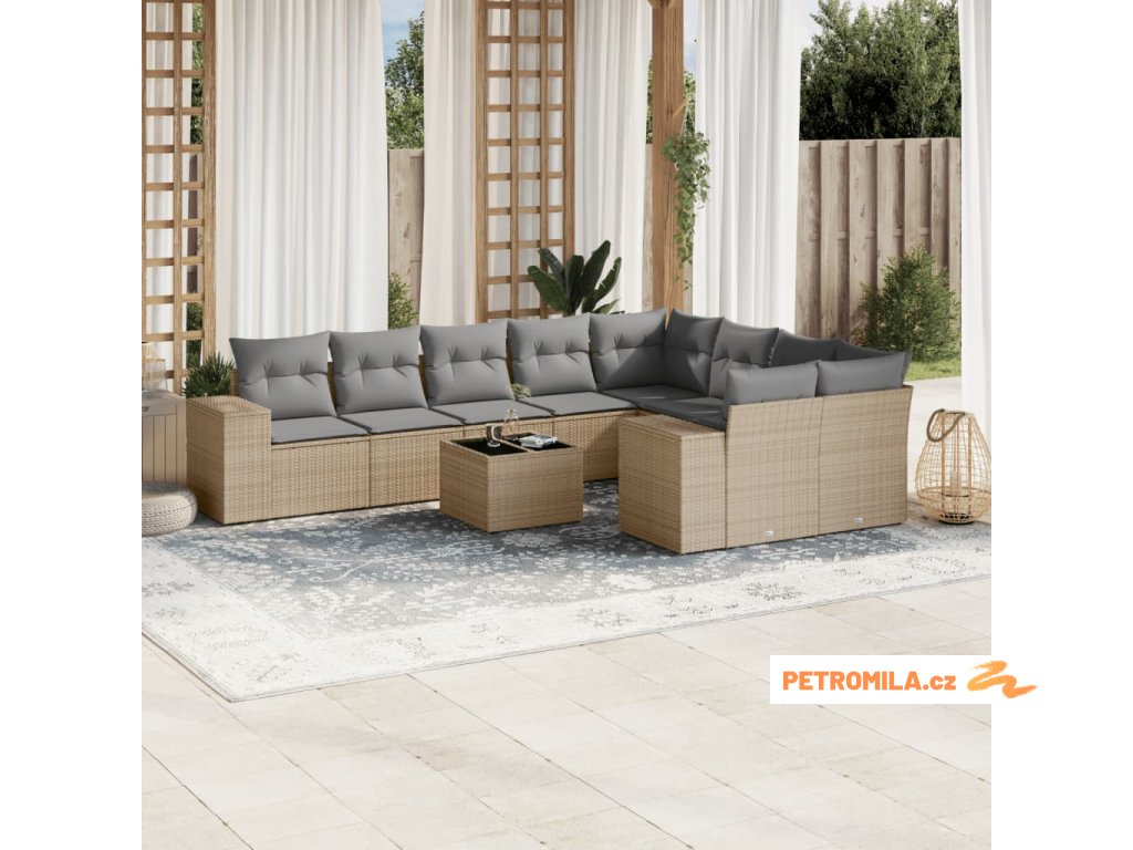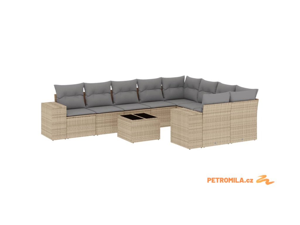 10dílná zahradní sedací souprava s poduškami béžová polyratan