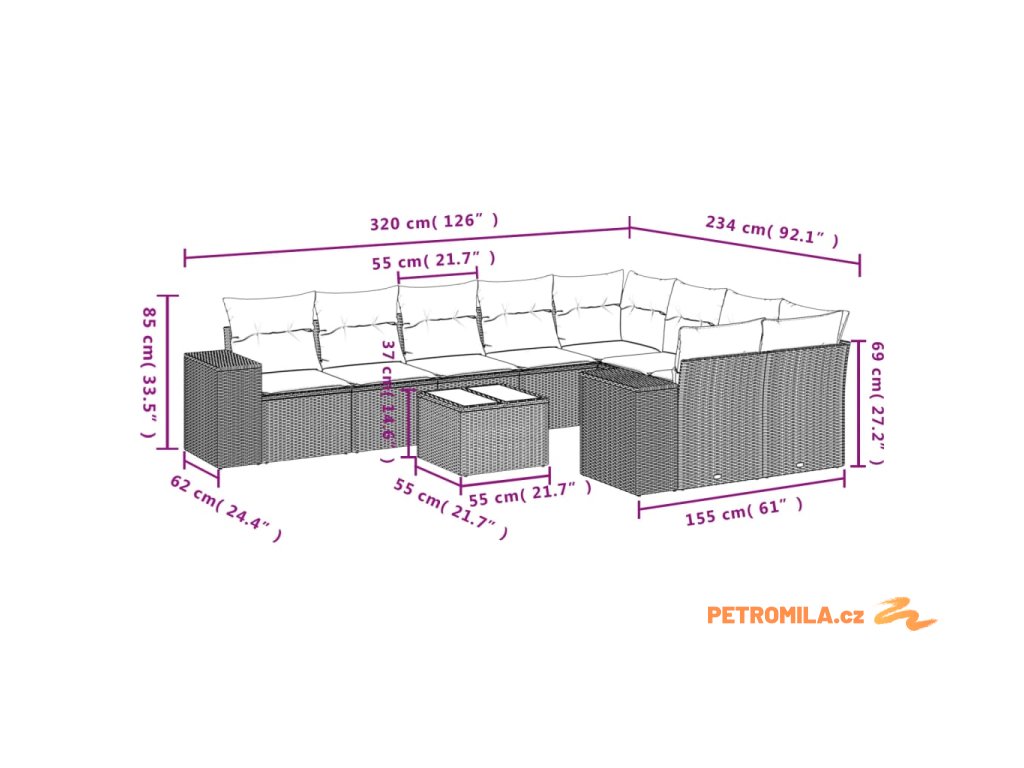 Tato zahradní sedací souprava je dokonalým doplňkem vaší zahrady, terasy nebo dvorku a poskytne vám pohodlné a příjemné místo, kde si můžete povídat s rodinou a přáteli nebo jen tak odpočívat a užívat si pobyt venku.
