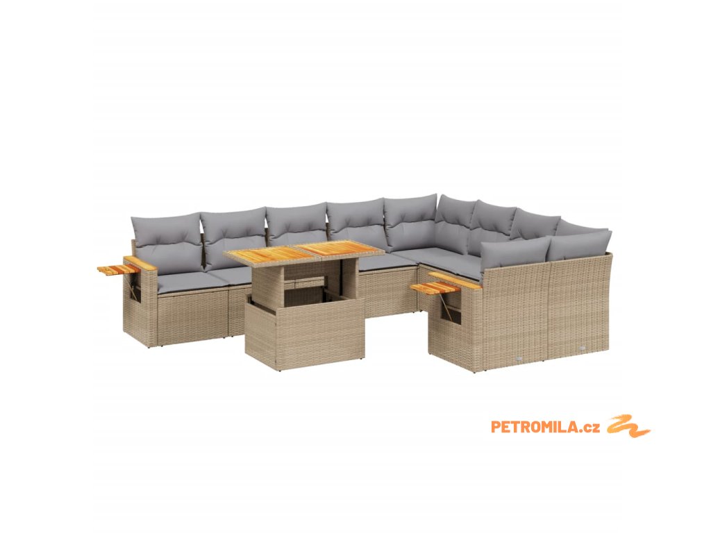 10dílná zahradní sedací souprava s poduškami béžová polyratan