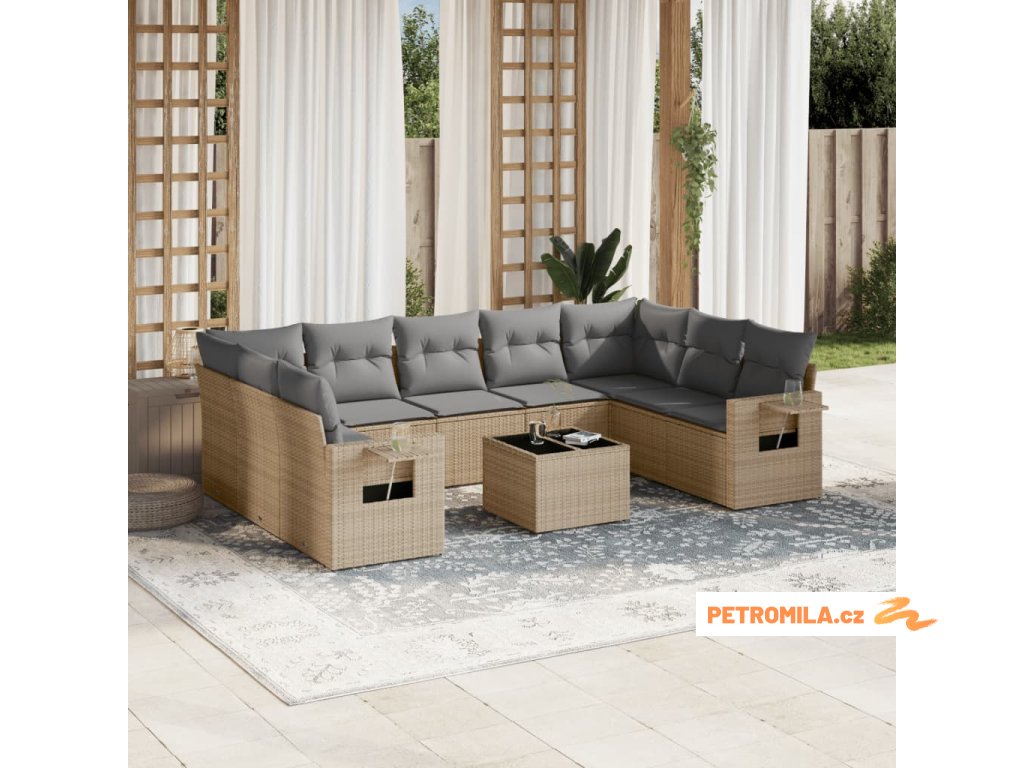 10dílná zahradní sedací souprava s poduškami béžová polyratan