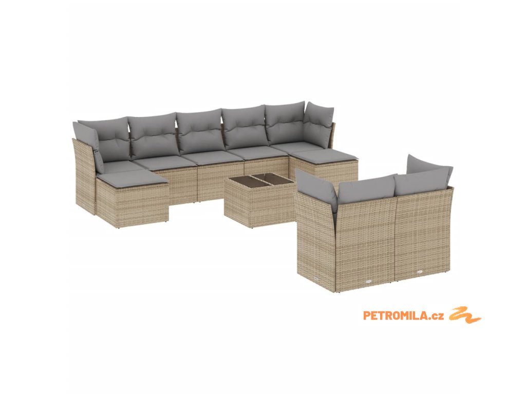 10dílná zahradní sedací souprava s poduškami béžová polyratan