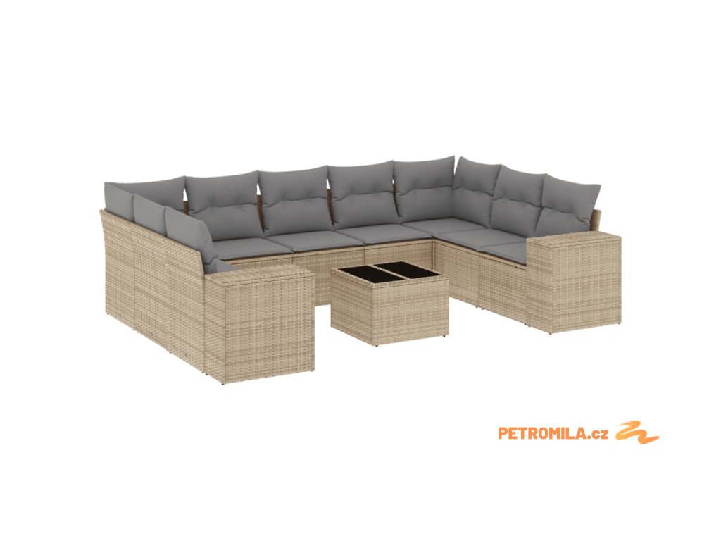 10dílná zahradní sedací souprava s poduškami béžová polyratan