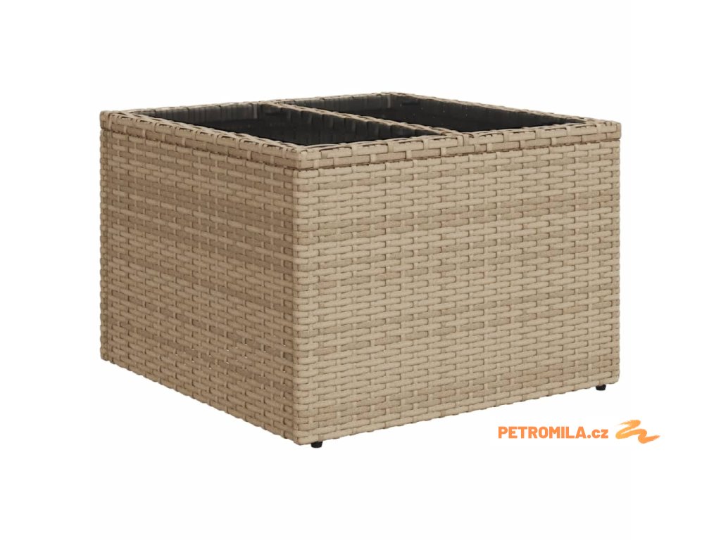 - Materiál: PE ratan, práškově lakovaná ocel, tvrzené sklo