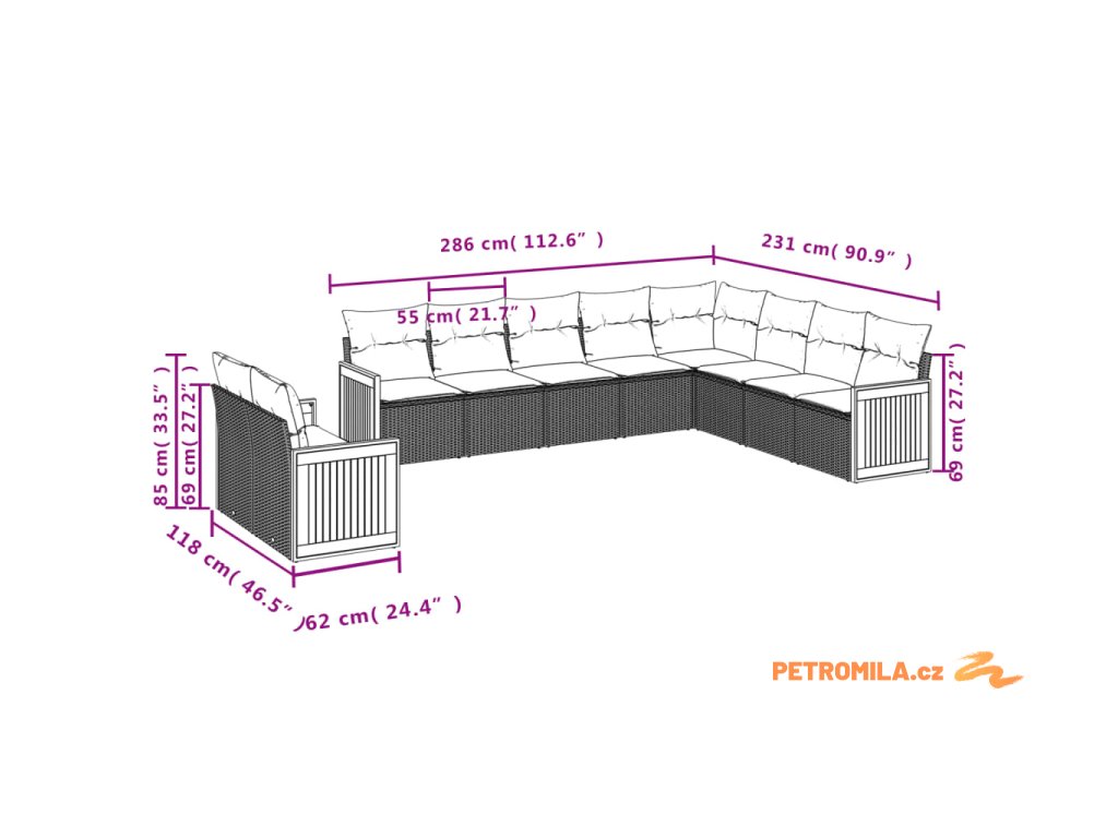 10dílná zahradní sedací souprava s poduškami béžová polyratan