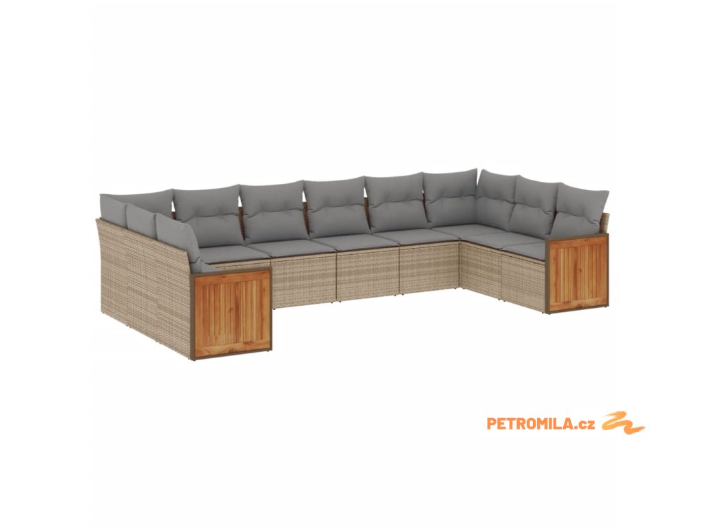 10dílná zahradní sedací souprava s poduškami béžová polyratan