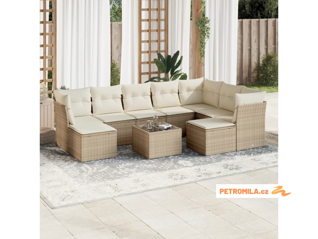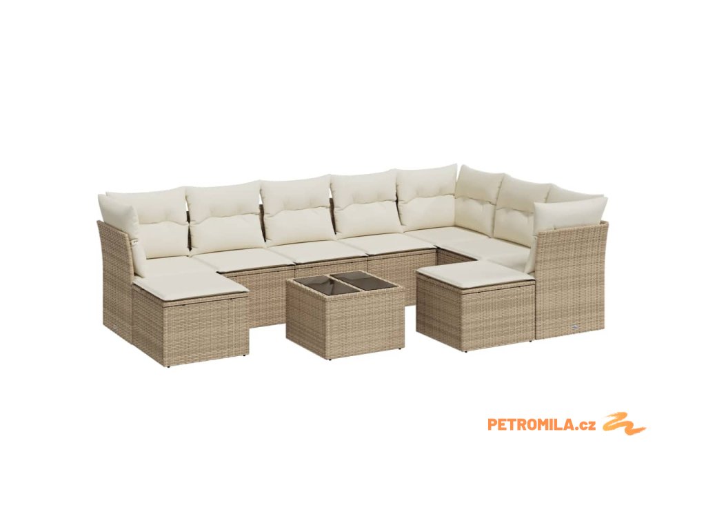 10dílná zahradní sedací souprava s poduškami béžová polyratan