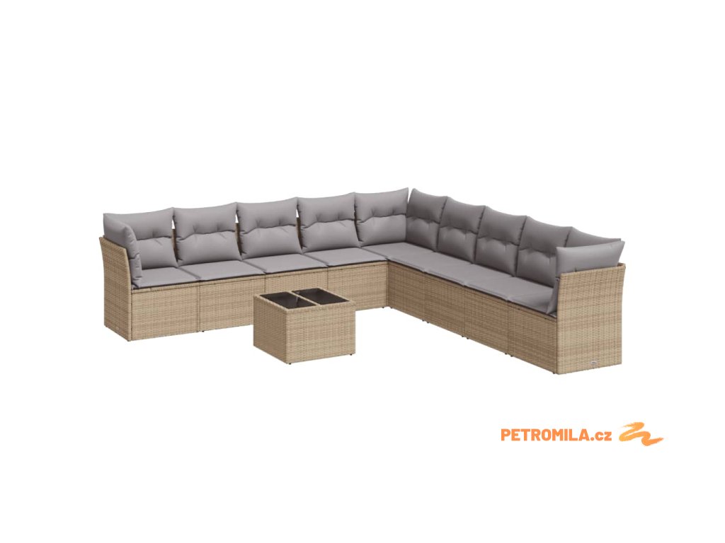 10dílná zahradní sedací souprava s poduškami béžová polyratan