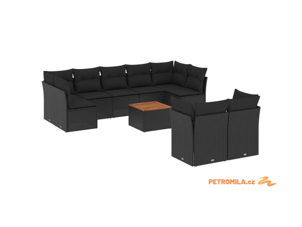 10dílná zahradní sedací souprava s poduškami černá polyratan