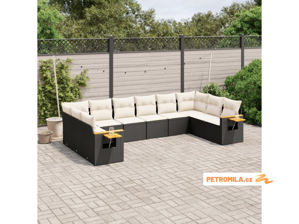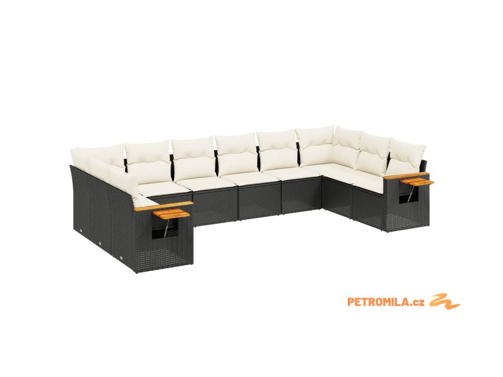 10dílná zahradní sedací souprava s poduškami černá polyratan